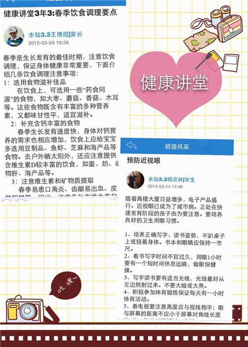 1、健康之路家长有几位家长是医务工作者的,推出:有关学生健康预防、治疗,春季学生生长发育注意事项。受到众多家长欢迎。